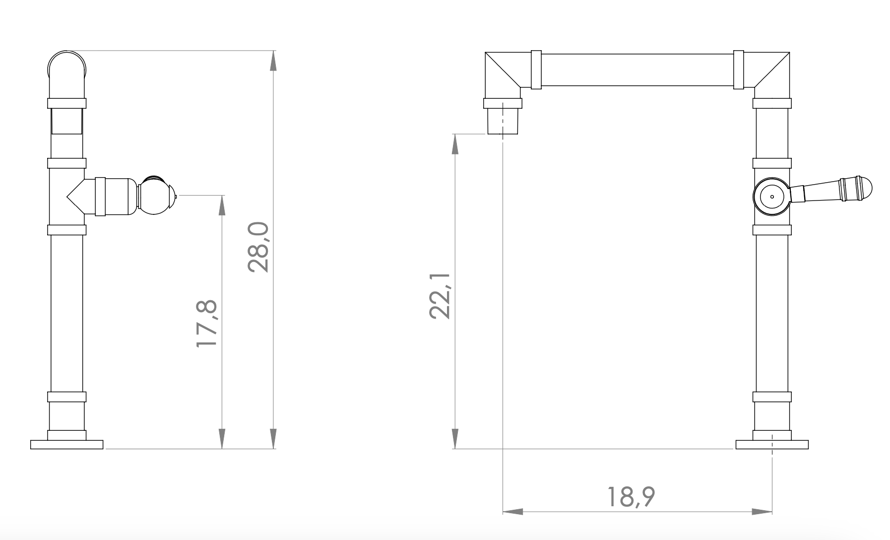 Nuestra llave Hércules es la definición del estilo industrial.Fabricada con niples, tuercas y codos visibles, es una grifería que celebra la estructura y la funcionalidad en su forma más pura.