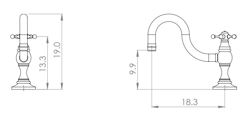 En esta versión de llave para mesón versión mini, se recomienda especialmente para lavamanos vintage originales pequeños.
