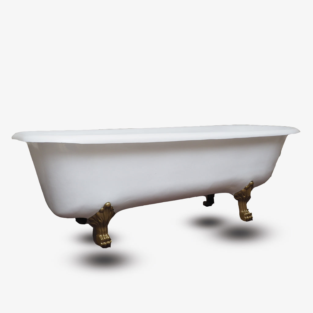 Bañera en porcelana sintética con curva en la parte frontal y en tamaño pequeño (largo de 1.40m y 65cm ancho). El color de la bañera y las patas son personalizables. Una vez hecha la compra, por favor escribirnos con el número de pedido y el color de bañera que desea.
